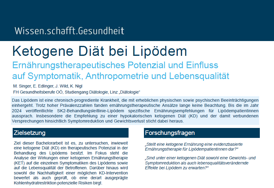 Ernährungstherapeutisches Potenzial und Einfluss auf Symptomatik, Anthropometrie und Lebensqualität M. Singer, E. Edlinger, J. Wild, K. Nigl FH Gesundheitsberufe OÖ, Studiengang Diätologie, Linz „Diätologie“